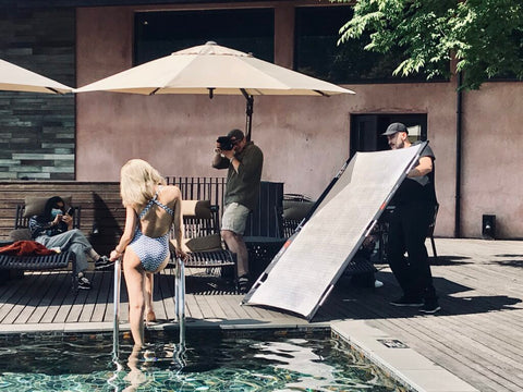 Last week, our team of seven left Shanghai for a neighboring province to shoot our new swimwear collection. What would have been a totally uneventful day trip in any other time felt like an epic adventure for all of us setting foot outside of Shanghai since COVID-19 took over the global landscape. The fact that Shanghai has been mostly back to normal for a month now – restaurants and bars open (and packed), shops and malls open (and packed) – conferred upon us the coveted Shanghai ‘green health code’ status allowing us to cross into another province. It felt like a privilege to be back on the road, even for the very non-essential task of taking photos of models by a lush swimming pool.