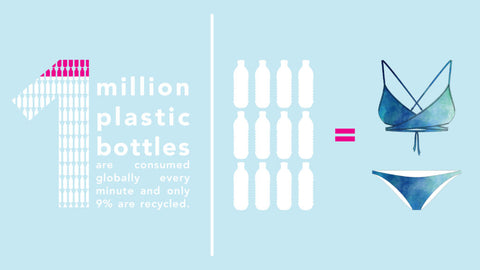 Our swimwear is made from recycled plastic bottles – a resource that is overrun at this point. Recycled PET (rPET) uses significantly less water than cotton and less water than making regular polyester. How? Because regular polyester is a petroleum-based product that requires huge quantities of water and chemicals for its extraction.